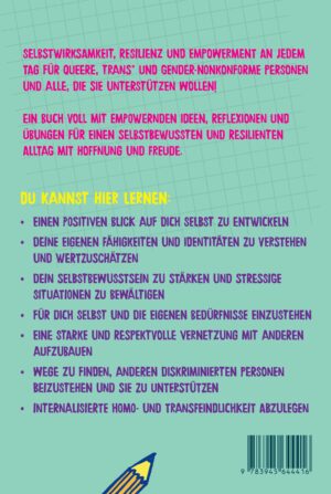 Wie können trans* und queere Menschen Selbstbewusstsein und Resilienz aufbauen in einer Welt, in der wir täglich mit Ignoranz, Ungleichheit und Diskriminierungen konfrontiert sind? Dieses Arbeitsbuch hilft dabei, internalisierte Homo- und Transfeindlichkeit abzulegen, stressige Situationen zu bewältigen und eine starke Community aufzubauen.