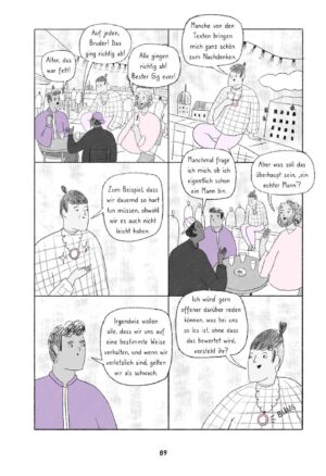 “Die Graphic Novel besticht nicht nur durch die Geschichten und eindrucksvollen Zeichnungen, sondern durch die Erzählungen werden auf weitere aktuelle Bücher, Personen und Bewegungen hingewiesen und in kurzen Passagen komplexe Zusammenhänge und Begriffe wie Kolonialismus, Postkolonialismus und Dekolonialität, Männlichkeit, Intersektionalität und Queerfeminismus auf einfache und eindrückliche Weise erläutert.”
