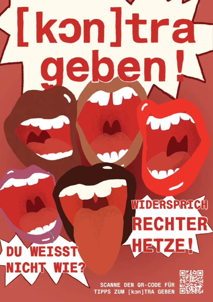 Nun seid ihr gefragt, denn um die Plakate in die Welt zu bringen, brauchen wir viele Unterstützer*innen. Hier sind eure Möglichkeiten, politisch in eurer Community, eurer WG, eurem Kiez, eurem lokalen Buchladen oder eurer Stadt aktiv zu werden:
