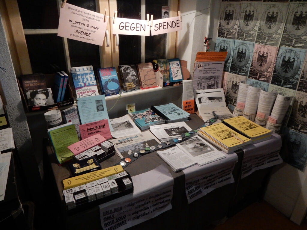 Eine Auswahl unserer Bücher findet ihr ab sofort auch bei der Dokumentationsstelle der Antirassistischen Initiative Berlin im NewYorck (Bethanien, Südflügel, Mariannenplatz 2A) und könnt sie dort gegen Spende mitnehmen. Die Spenden kommen der Dokumentationsstelle zugute.